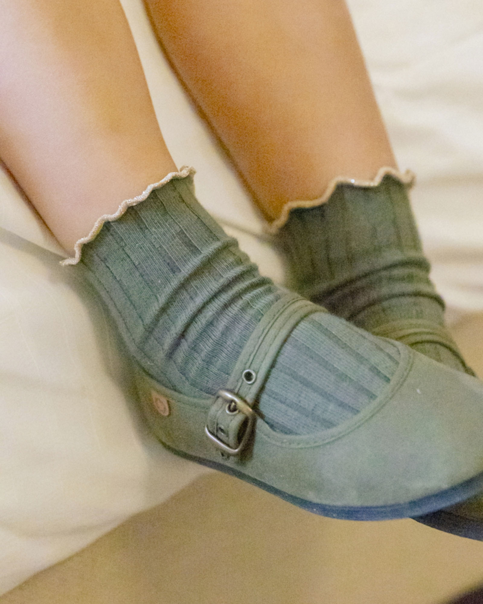 BoutiqueChaussettes Côtelés Vert Bordure Doré