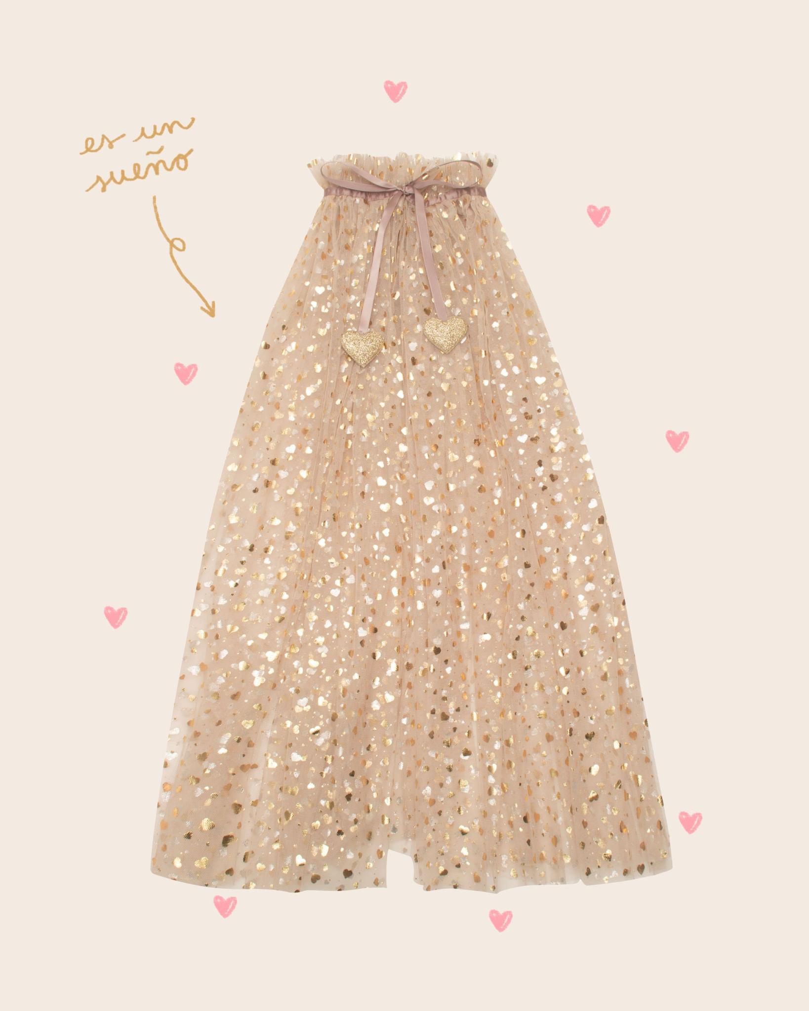 BoutiqueCapa Tul Dorada Corazones