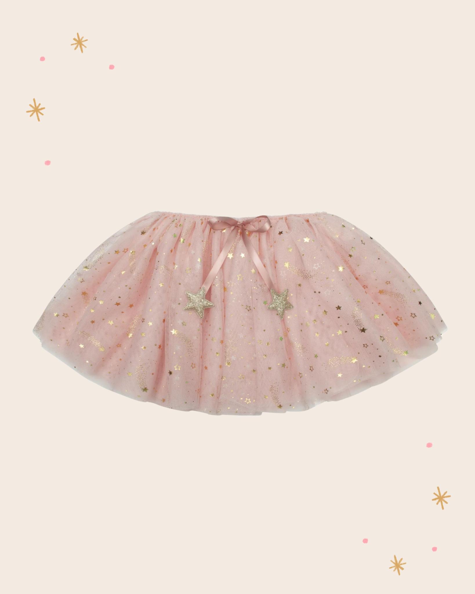 6 capas de tul rosa suave salpicadas con estrellas doradas metálicas