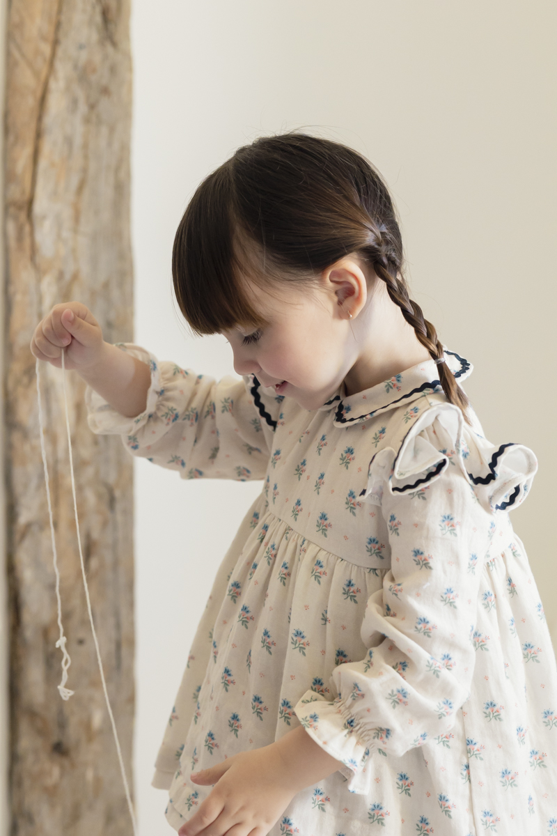 BoutiqueRobe Fronces Gaze Fleur Bleue et Rose
